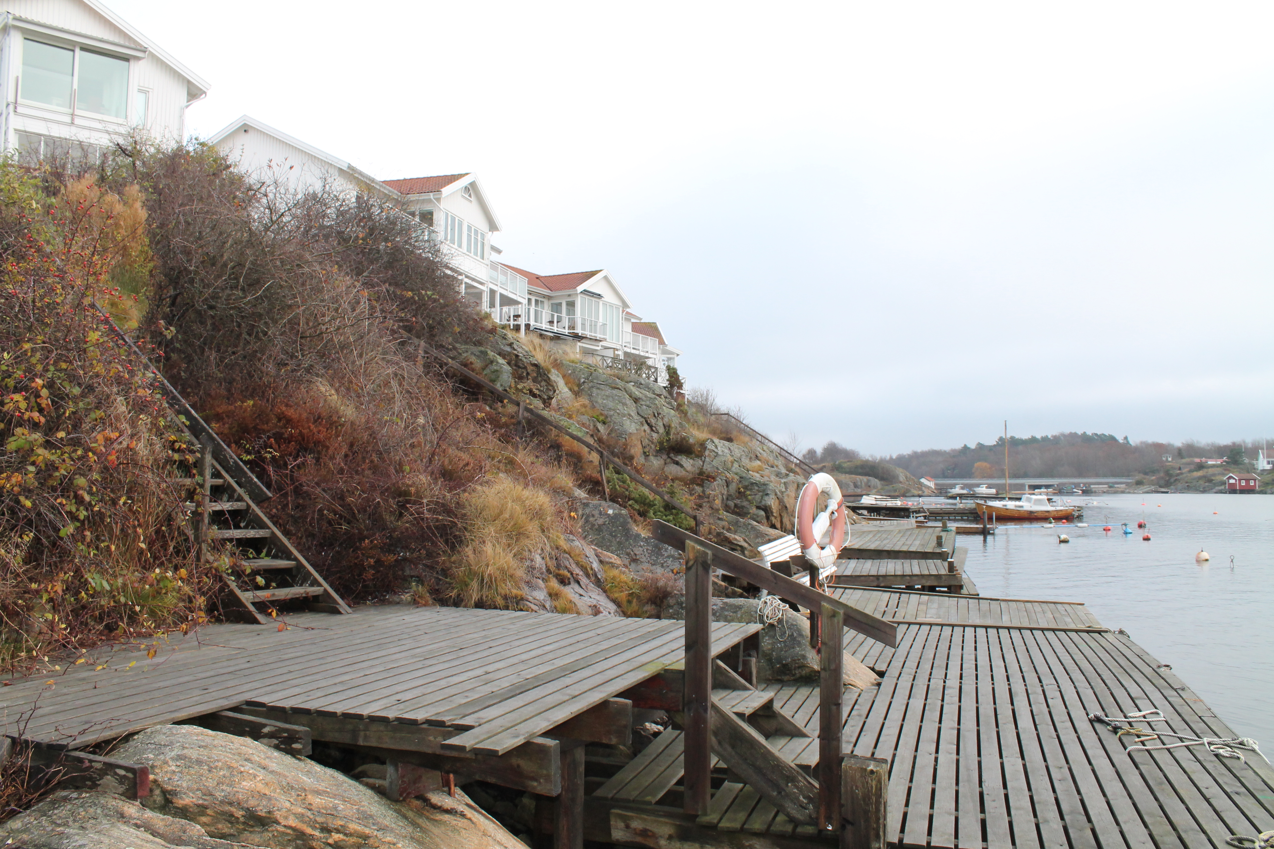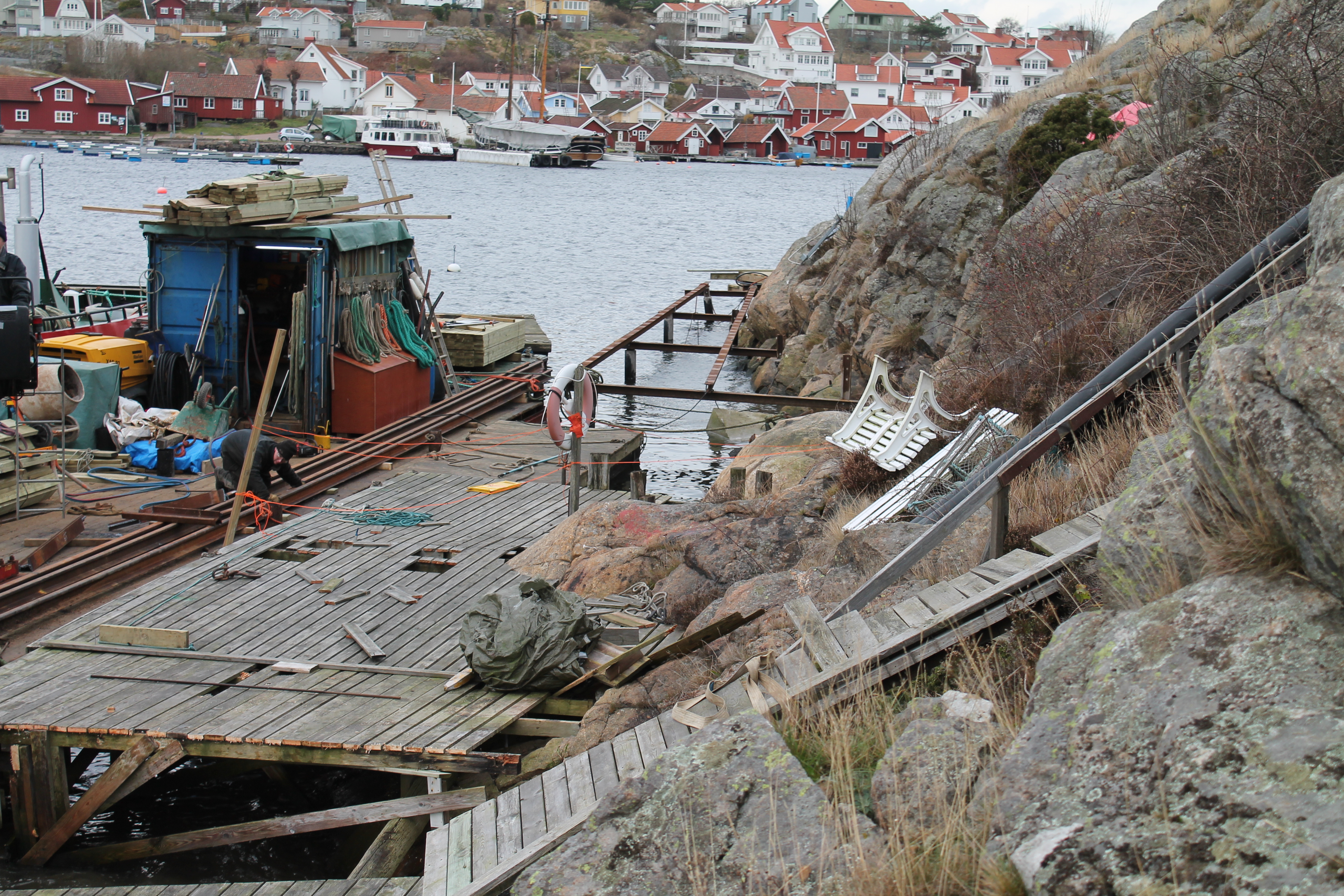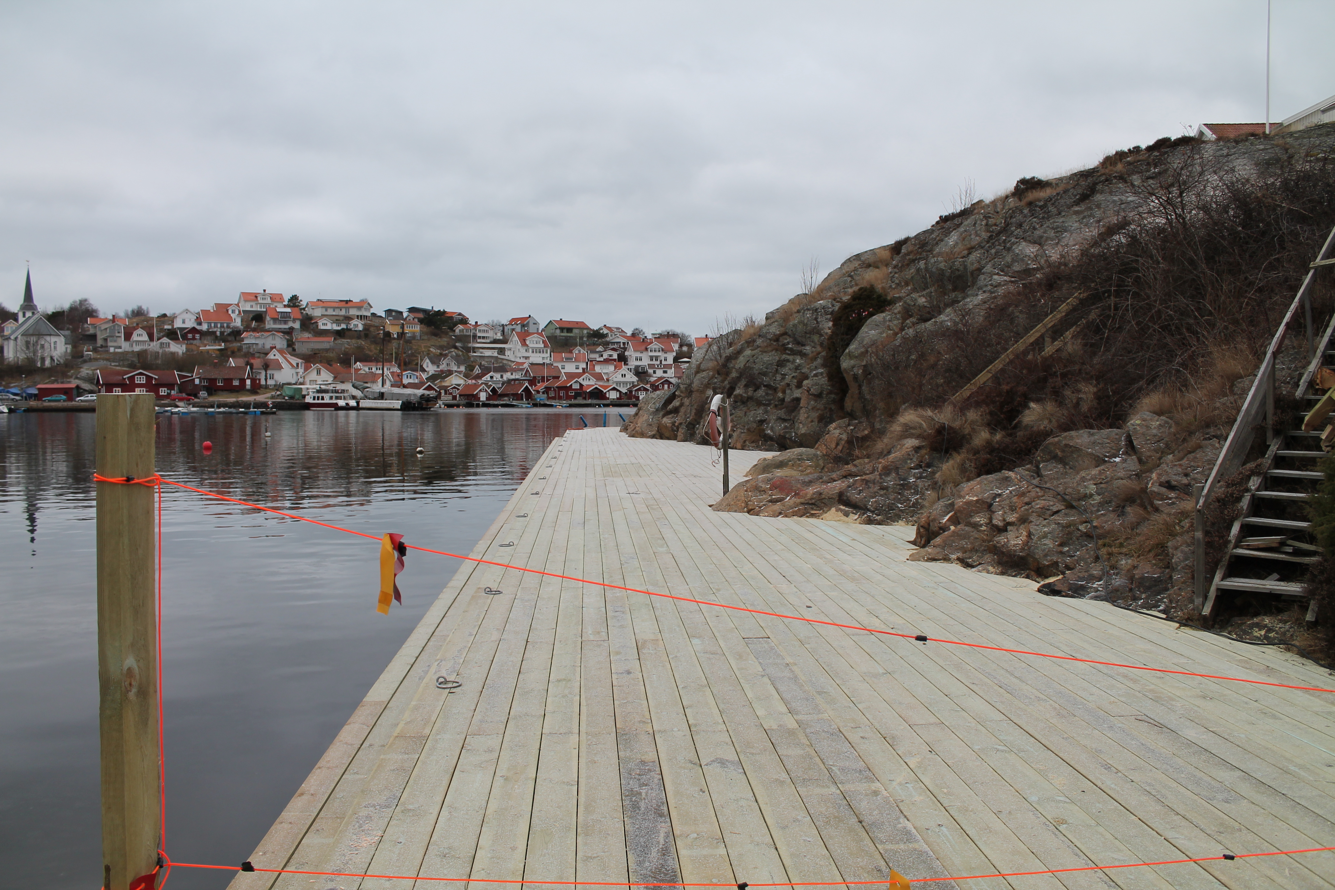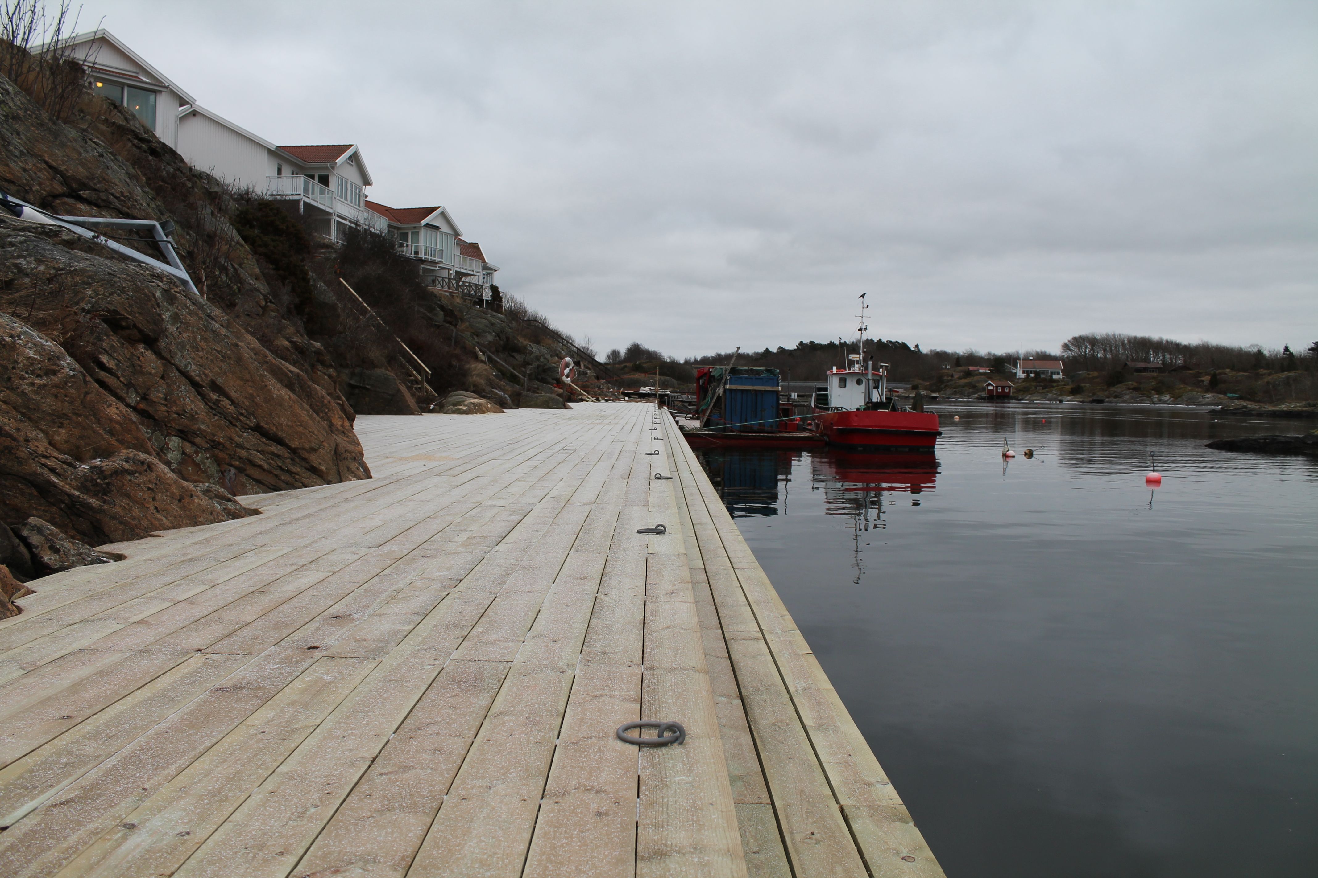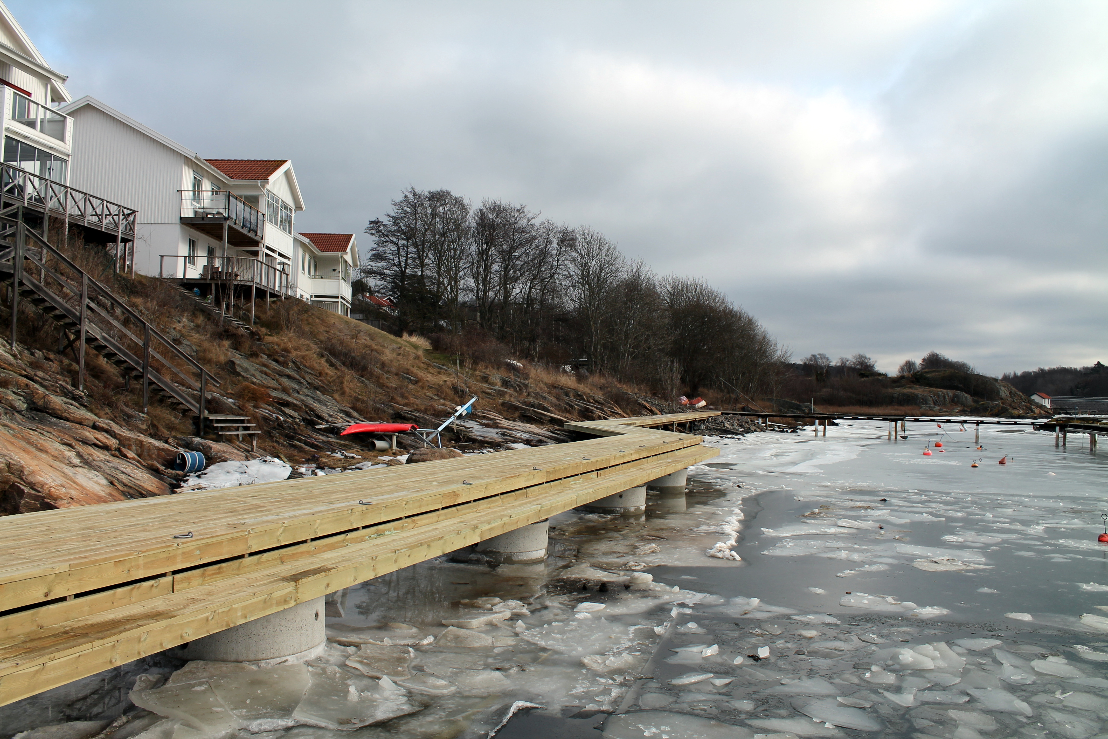 Till varje rum så blir det en uteplats med stolar och bord. Utsikten är helt fantastisk. På slutet av en av bryggorna så blir det en bastuflotte som byggs av Pontus Wilén och byggföretaget GRG i Grundsund som inom kort kommer att bogseras till lyckans Slip.