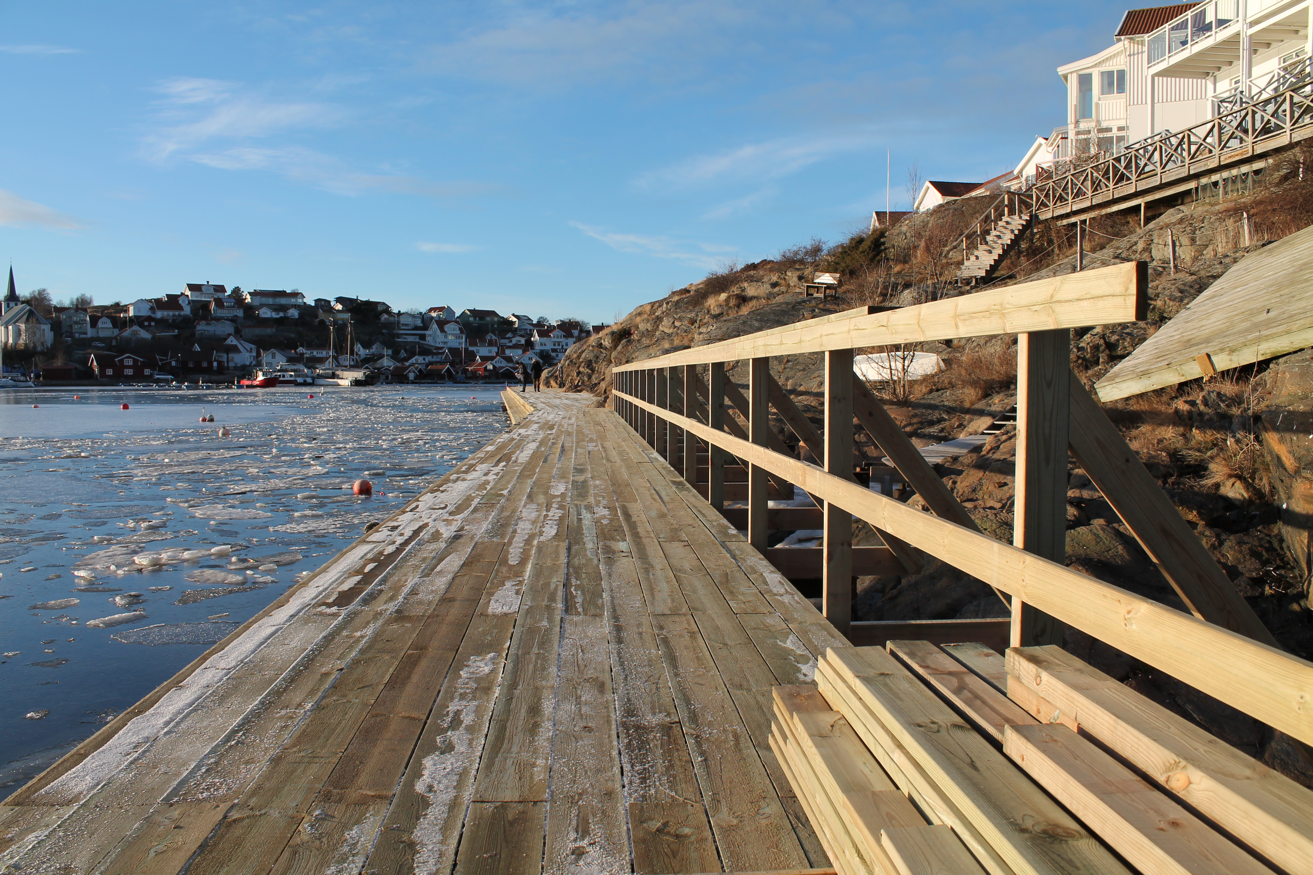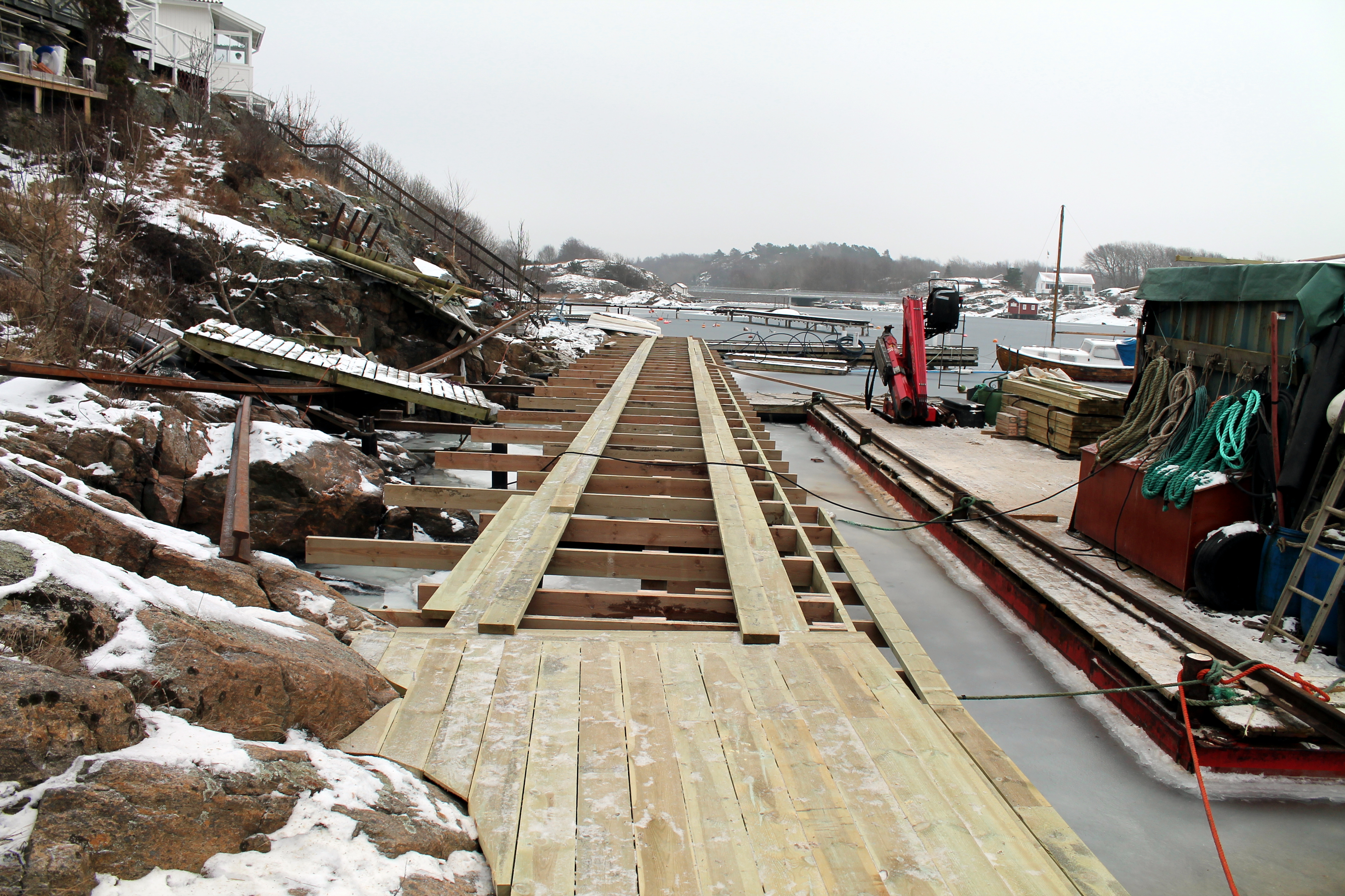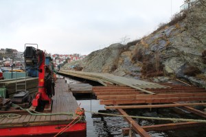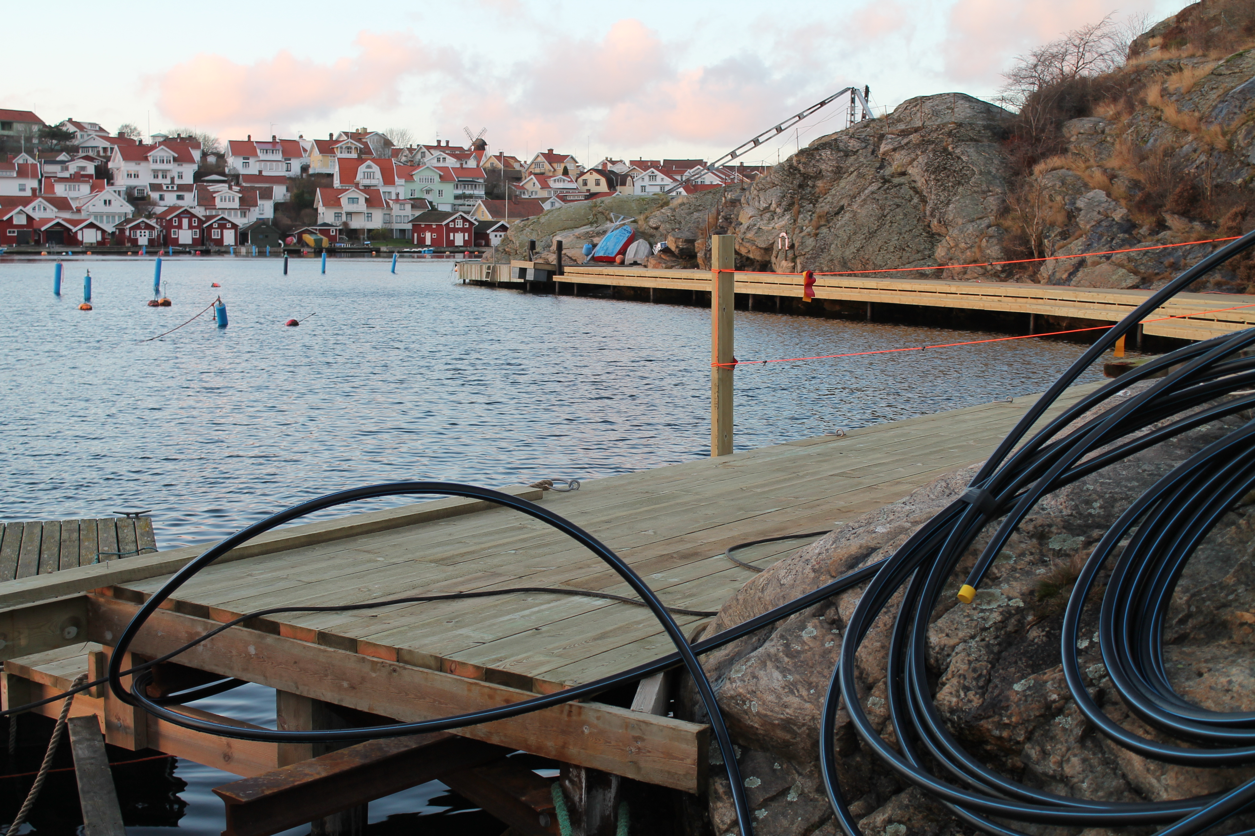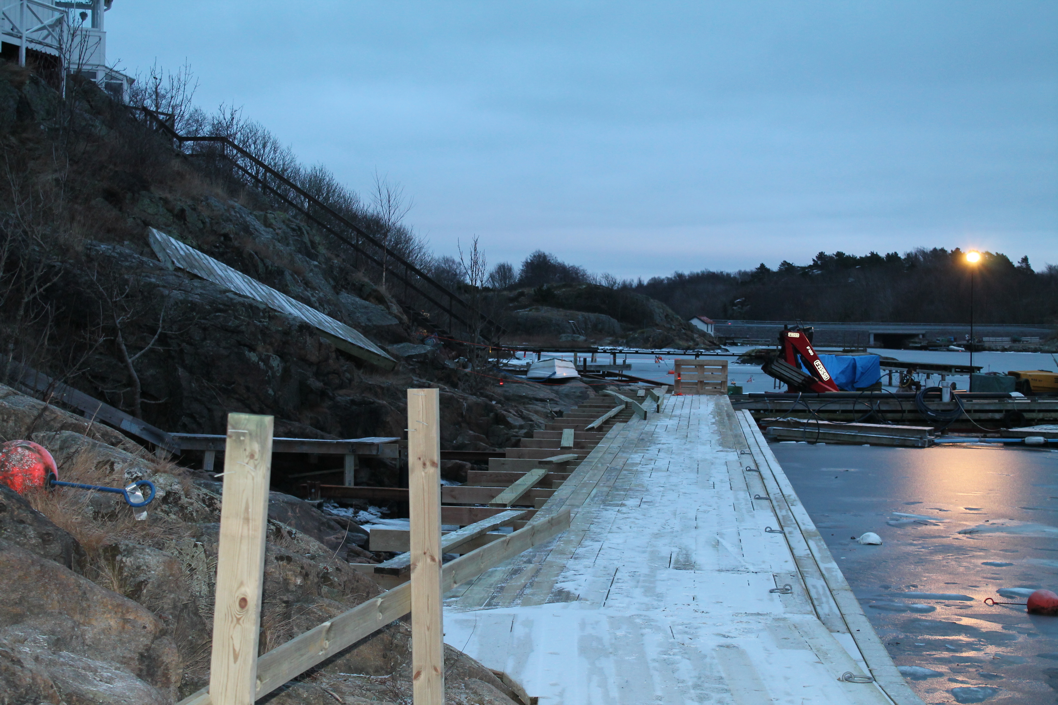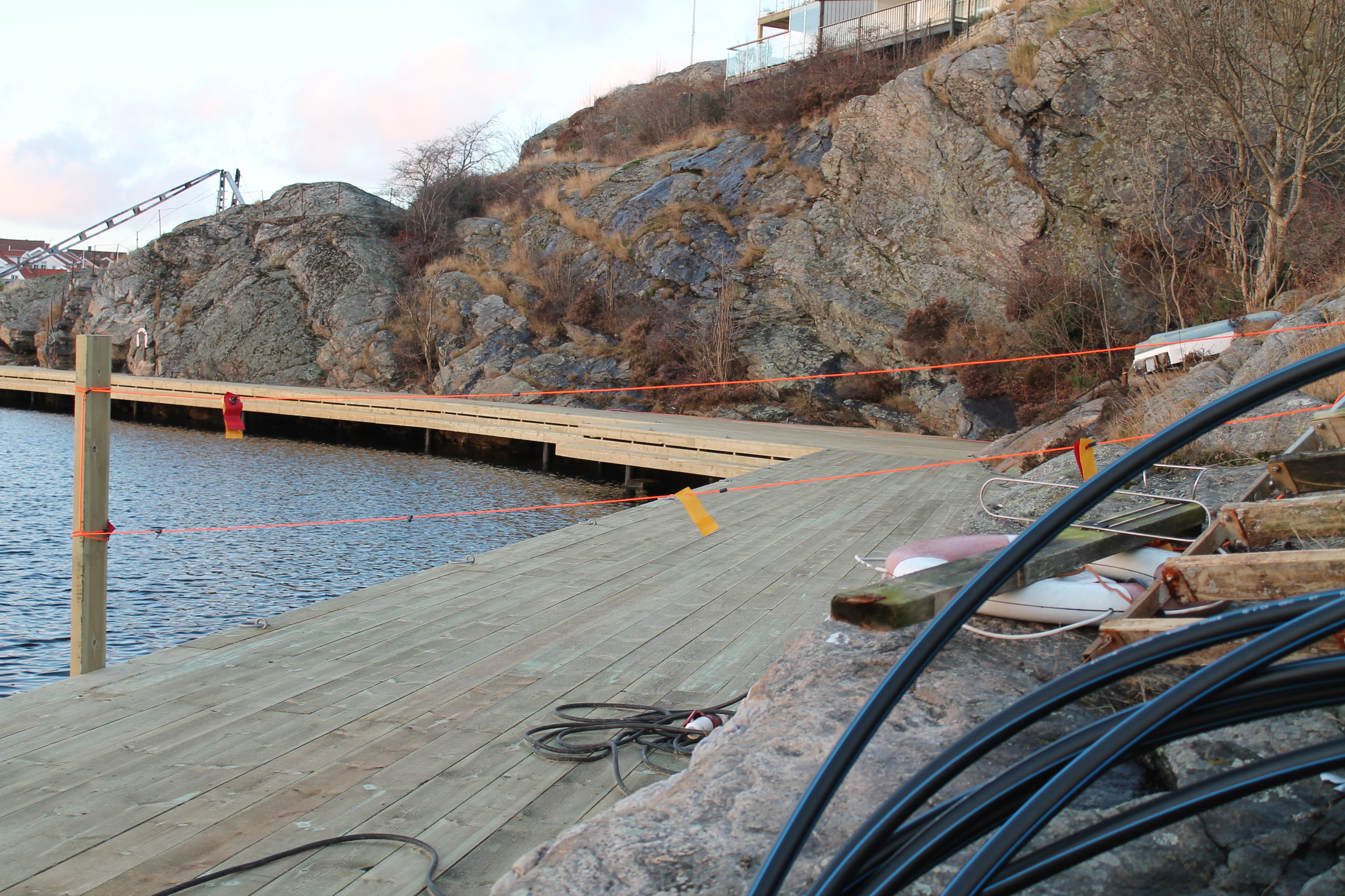 Till varje rum så blir det en uteplats med stolar och bord. Utsikten är helt fantastisk. På slutet av en av bryggorna så blir det en bastuflotte som byggs av Pontus Wilén och byggföretaget GRG i Grundsund som inom kort kommer att bogseras till lyckans Slip.