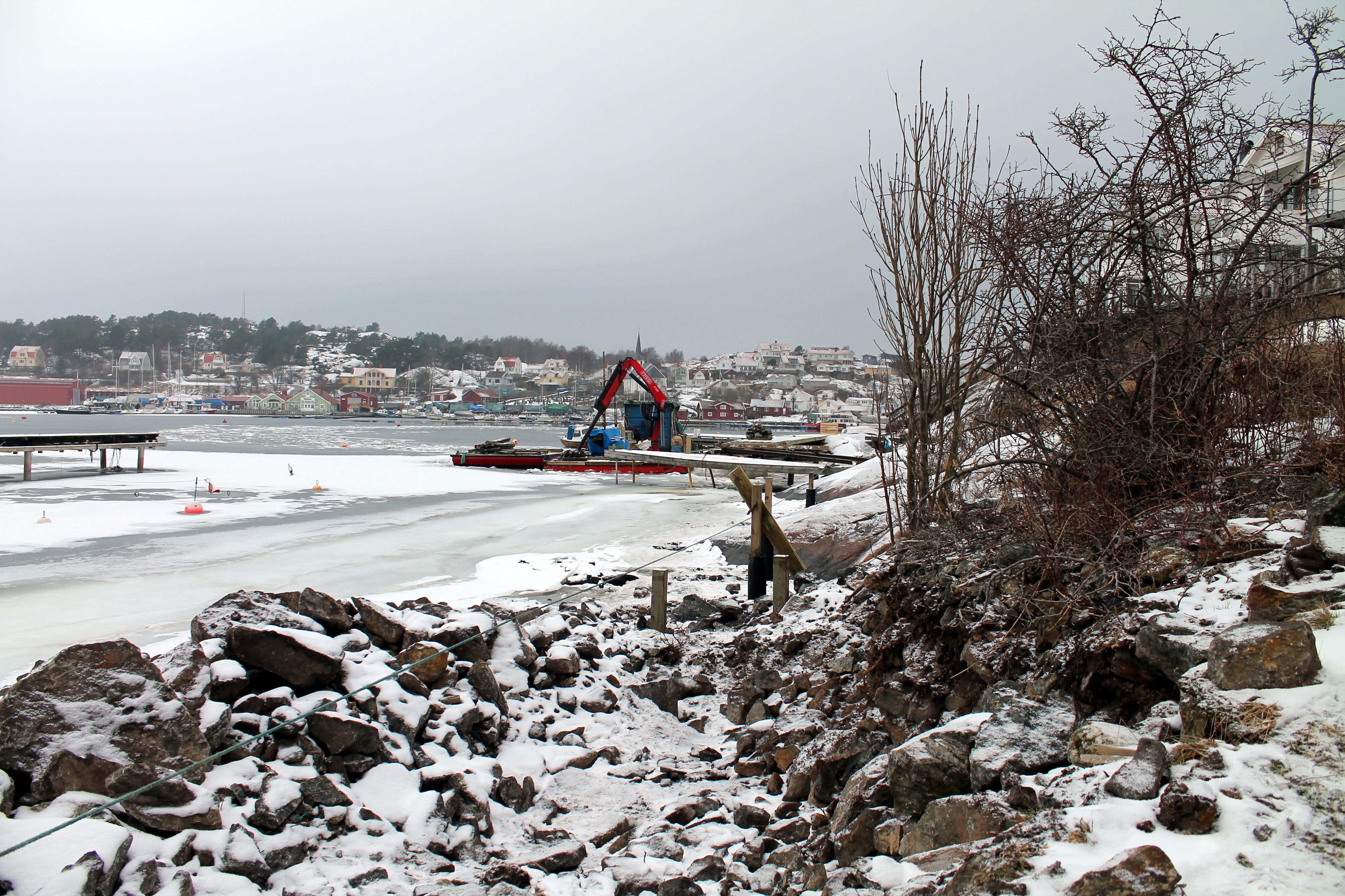 Reine berättade att förr så drog de upp båtarna på räls till det gamla sliphuset. Rälsen som finns nere i vattnet nedanför byggnaden påminner om detta.