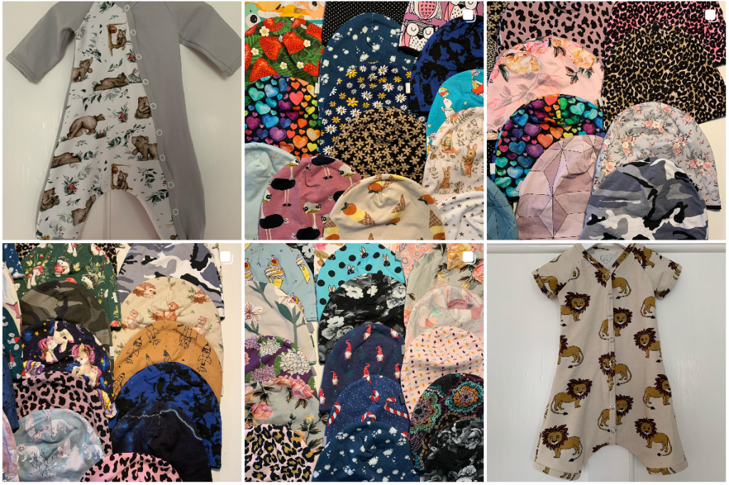 Det startade med mössorna, men sen kände jag att jag ville sy något mer och då blev det bodisar, tröjor och klänningar med mera.