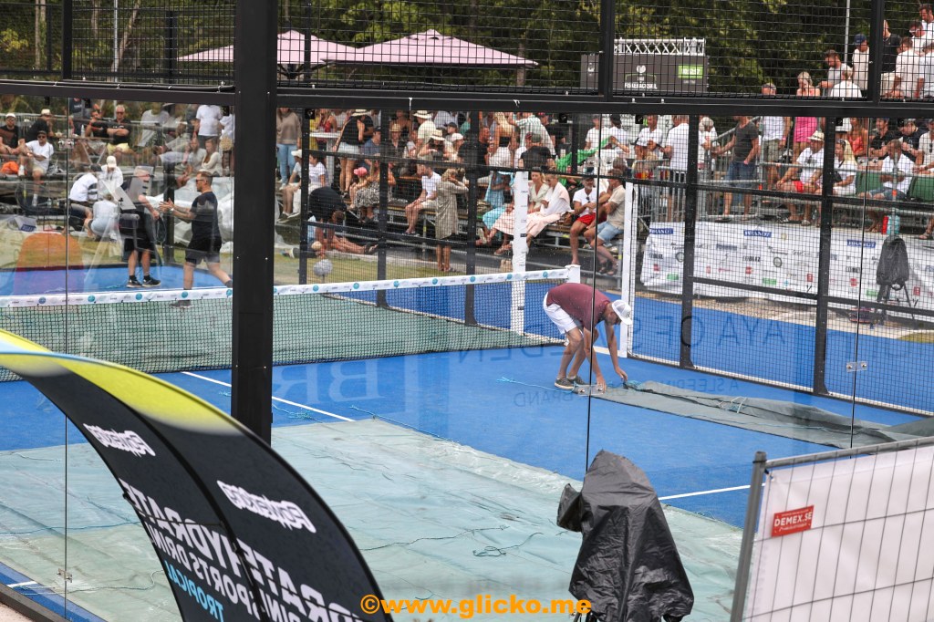 Damfinalen bjöd också på ett kort regnavbrott där Sofia Arvidsson efter påbörjat spel efter regnavbrottet fick en känning i vaden och fick tejpas av Maya Molin som fanns på plats vid tävlingen. Andersson/Wyckaert vann med 7-6, 5-7, 6-7.