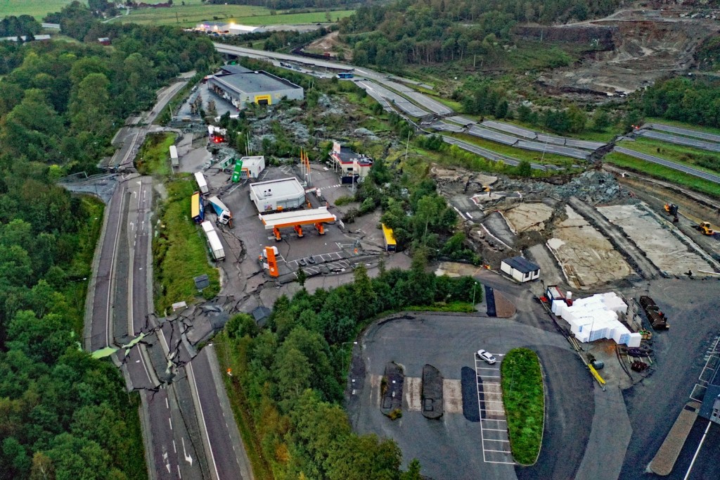 Det är lite fascinerande också att Norge var före Sverige med att rapportera om jordskredet, för vägen här är pulsådern till Norge. Alla lastbilar passerar denna vägen till Norge.