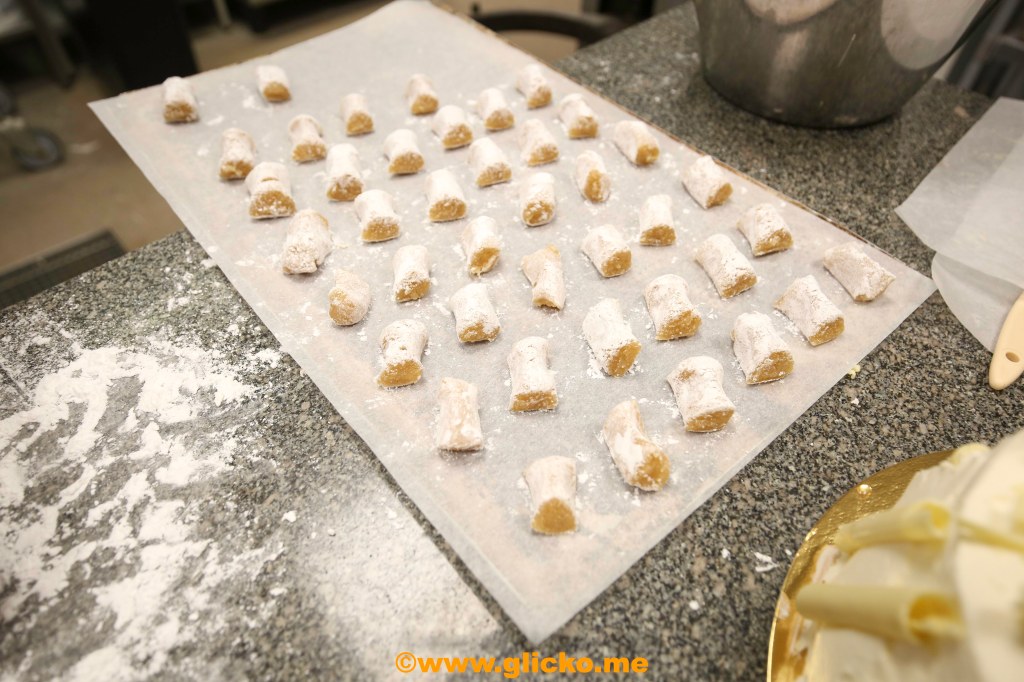 Som en extra grej på bloggen, så gör även Frasse lite kransekager. Mandelmassan rullas i florsocker och skärs sedan till mindre bitar som Frasse lägger ut på en plåt med bakplåtspapper och som gräddas i ugnen på 175 grader i cirka 10 minuter.