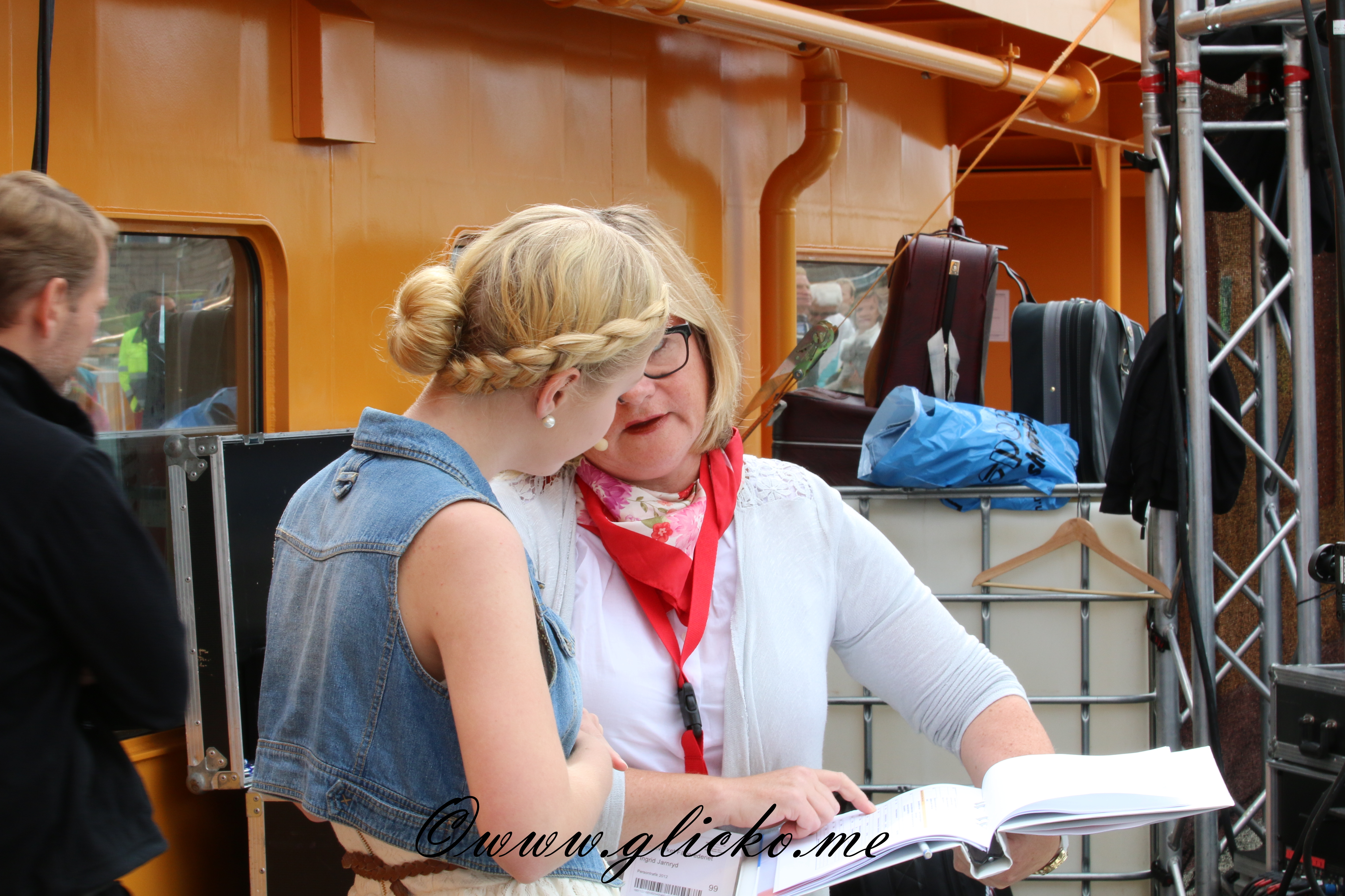 Det är snart dags för Frida att inta scenen och innan pratar hon med konferencier Ingrid Jarnryd från färjerederiet Vaxholm.