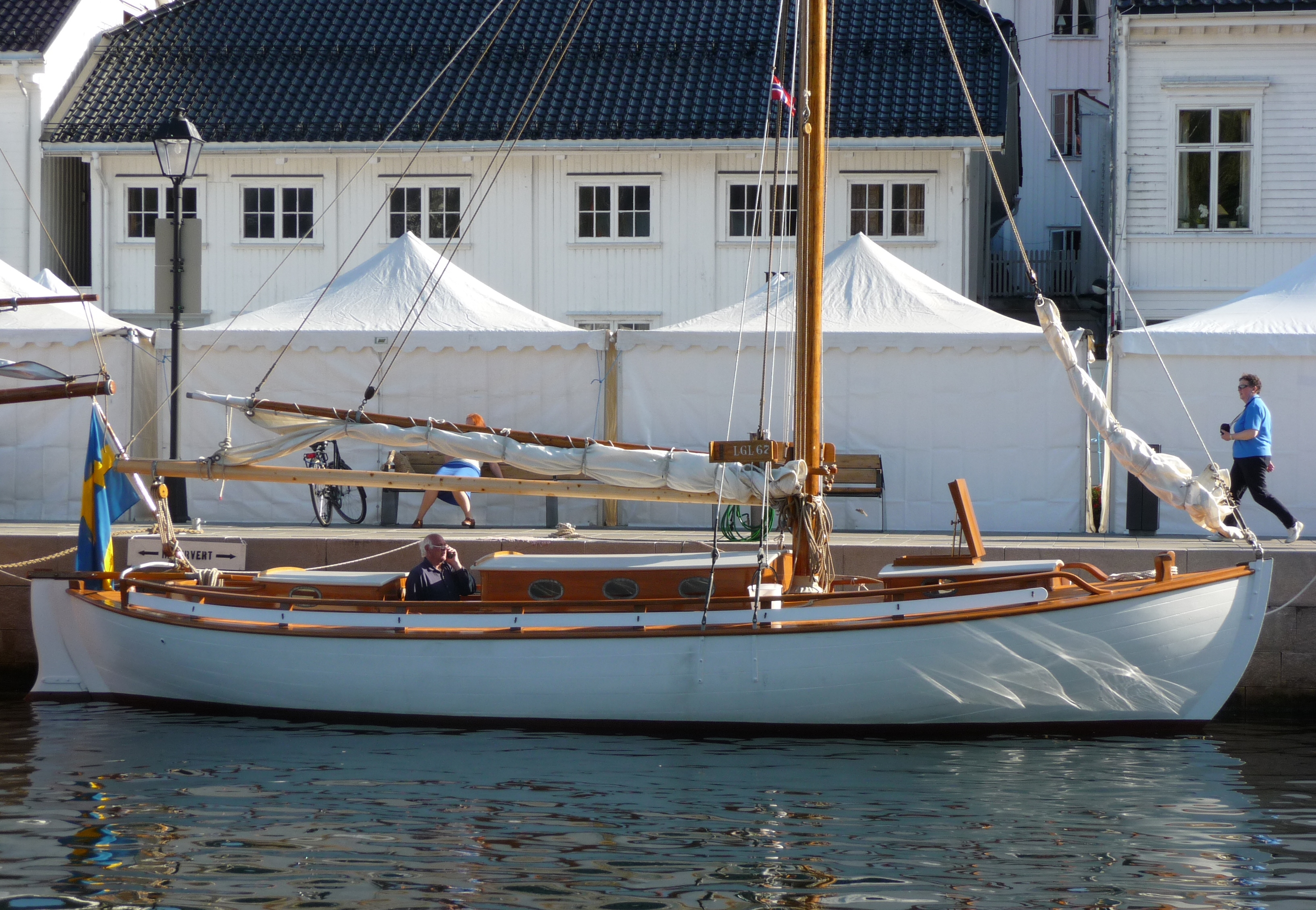 Jag åker till Grundsunds Marina och där ligger hon Royal Virgo bland en massa andra båtar i hamnen. Jag går ut på bryggan och hojtar till och där står Christoffer Göthesson som jag känner sedan tidigare och Christoffers fästmö Elin Johansson som jag bara har haft nöjet att hälsa på någon gång. Elin jobbar på Kustbevakningen och Christoffer jobbar som elektriker på företaget Curator.