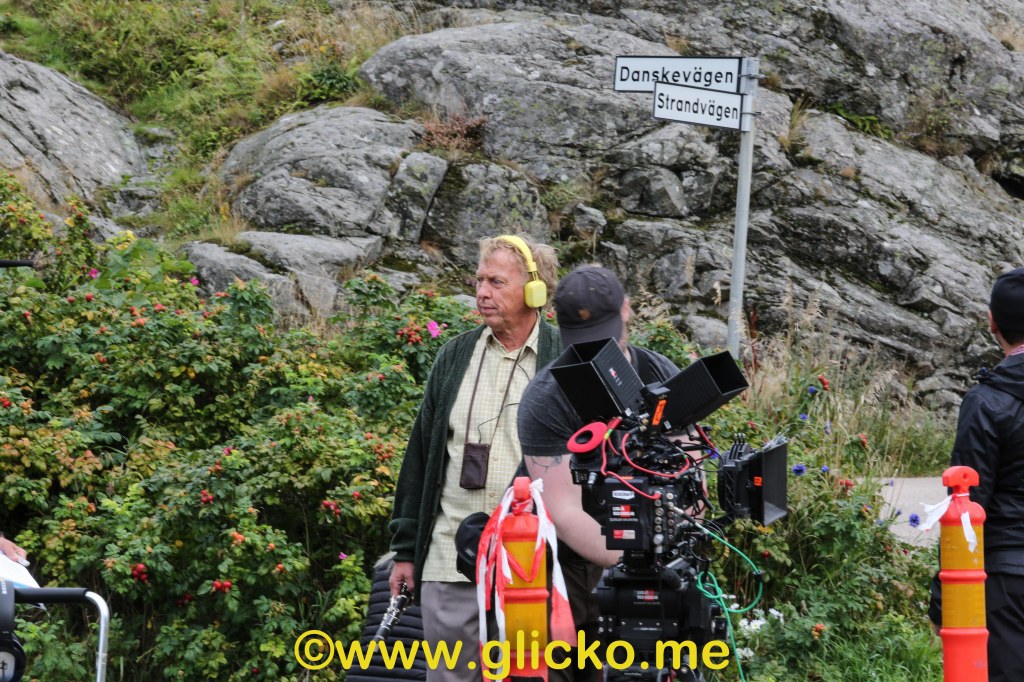 Ett annat tillfälle var på Skaftö och inspelningen av Saltön. Jag frågade Malin Söderlund som var producent för Saltön om jag fick komma och få en intervju med henne och fotografera under inspelningen. Givetvis tog jag kontakt med Viveca och frågade om hon ville följa med. Jag hämtade Viveca utanför hotell och vandrarhemmet Strand 1 för avfärd till Skaftö.