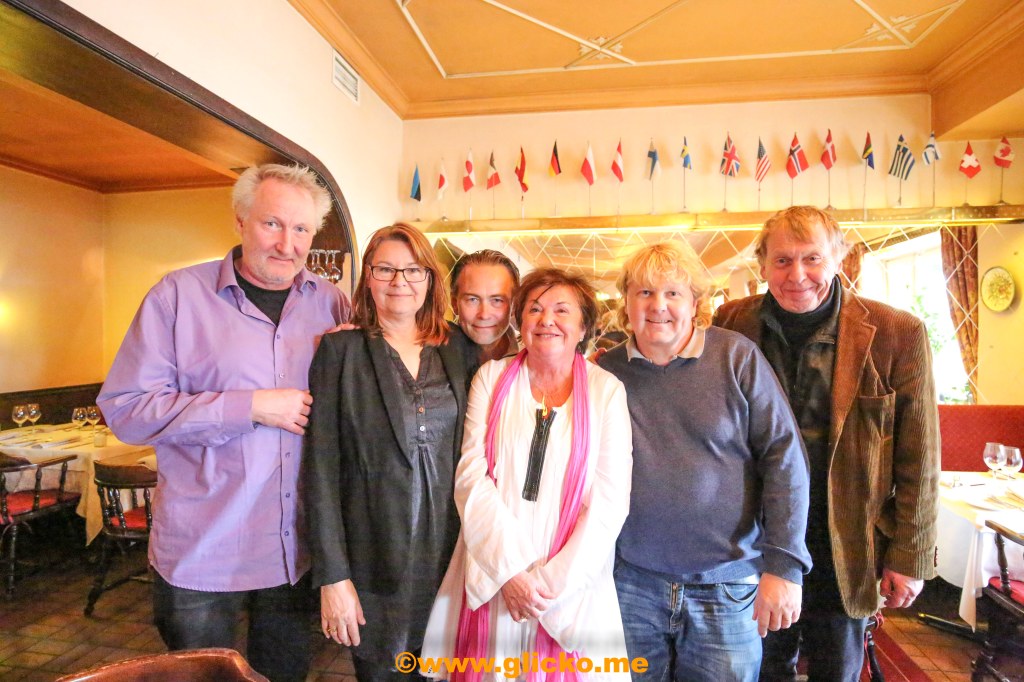 Väl på plats på restaurang Kometen i Göteborg som bl.a. stjärnkrögaren Leif Mannerström är ägare till blev det stor baluns med mat, dryck och mycket folk. Några av skådespelarna i serien Saltön fanns givetvis på plats, och jag passade givetvis på att få ett foto tillsammans Viveca och dem.