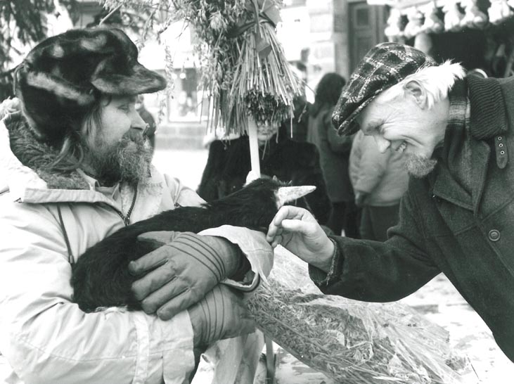 Per Oscarsson tittar på en liten killing som Kurt Forsberg hade. Foto: Thomas Andersson/Lysekilsposten