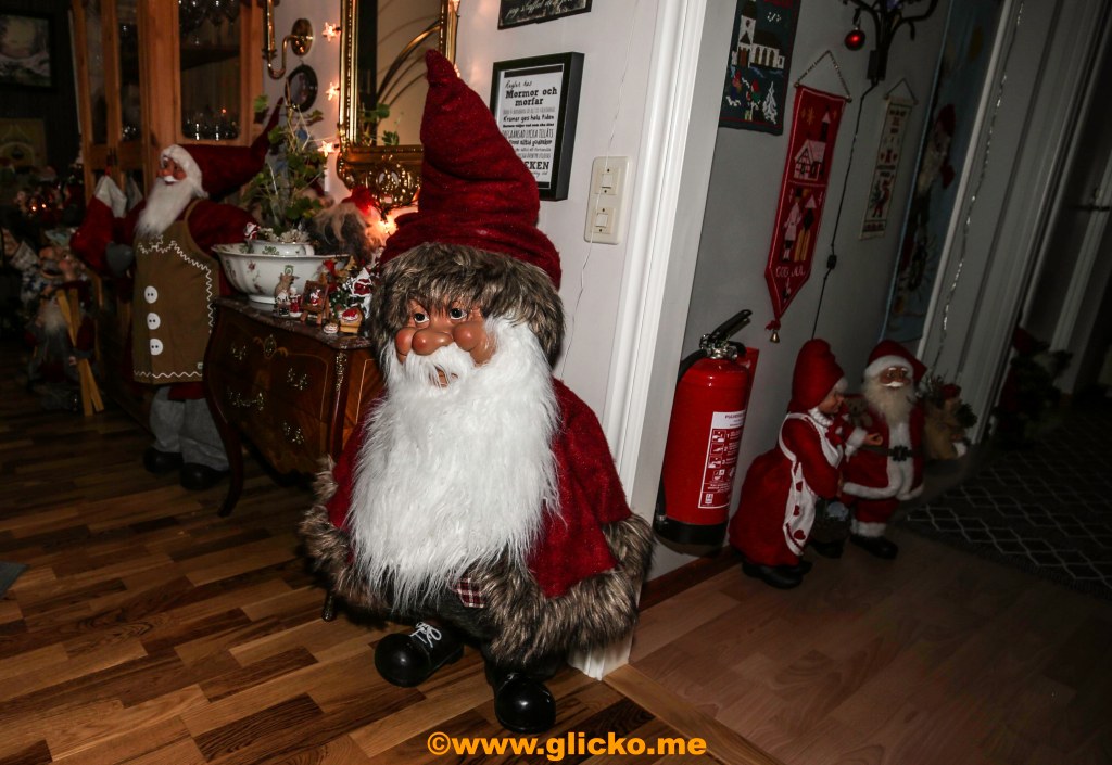 Jag har haft den stora äran att besöka Carina och Tommy ett antal gånger och fått se deras fina juldekorationer på nära håll. Även inne i sitt hus finns det tomtar högt som lågt även om Carina berättar för mig att det har blivit lite mindre tomtar inne än tidigare.
