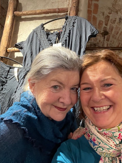 – Jag, Linda, var inne i en fantastisk fin butik i gamla stan (Stockholm) i går. En vacker kvinna med mycket utstrålning kom in och jag kände igen henne. En skådespelerska tänkte jag – spännande… Vi började prova lite olika kläder och började prata med varandra. Hon letade kläder till kommande teaterföreställningar och jag, jag bara provade och letade nya modeller för mig att sy.