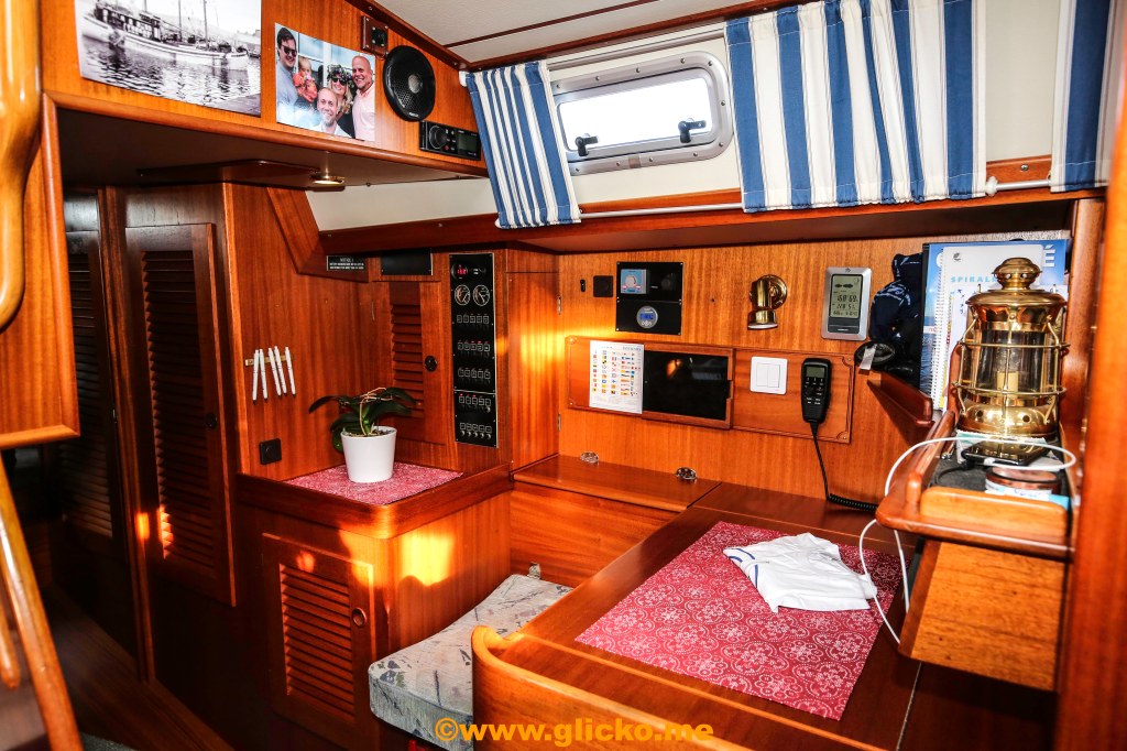 Jag går ombord och tar mig ner i salongen som ser så hemtrevlig ut. Det är ganska stort och Elin visar mig runt innan vi sätter oss ner och fikar och pratar om båtar och mycket annat.