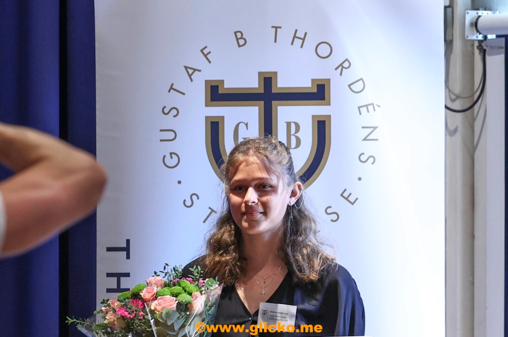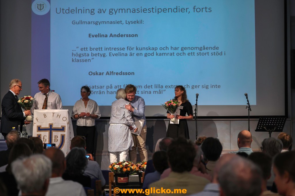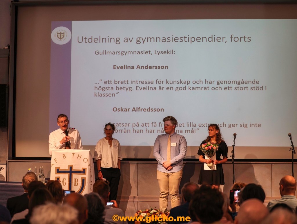 Sedan var det dags för utdelning av stipendierna. Det delades ut flera stipendium men från Gullmarsgymnasiet i Lysekil fick Evelina Andersson från Smögen och Oskar Alfredsson från Lysekil ta emot varsitt stipendium.