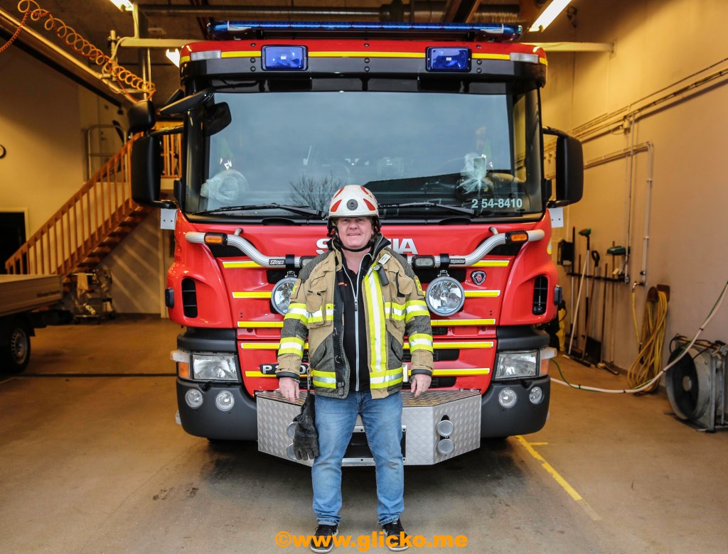 Där träffade jag Karl – Fredrik Petzäll styrkeledare, brandinspektör och blivande stationschef i Brastad. Vidare på plats fanns även Lars Johansson, Martin Stensson styrkeledare i pol, Bo Sandström styrkeledare, Johan Skoog och Anders Henriksson aktiv i 28 år som nu är pensionerad som brandman men som fanns på plats när jag var och hälsade på.