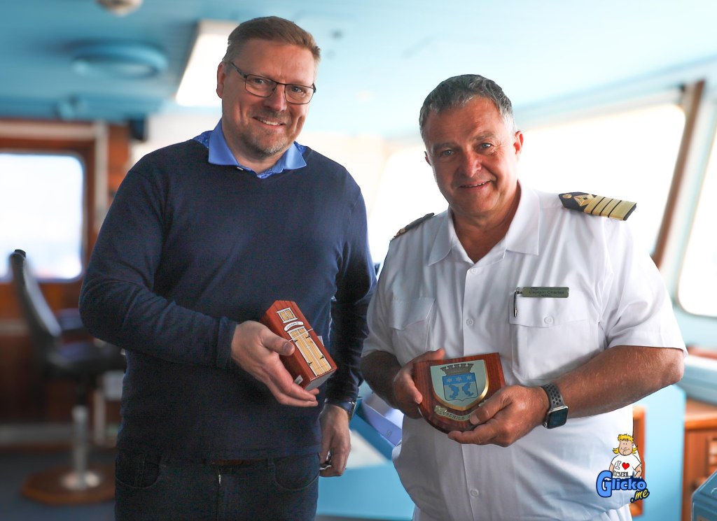 Efter det var det Peters tur att lämna över en gåva från SDK-Shipping. Kapten Stan berättade också om en svensk tjej som jobbar ombord som Deck cadet.