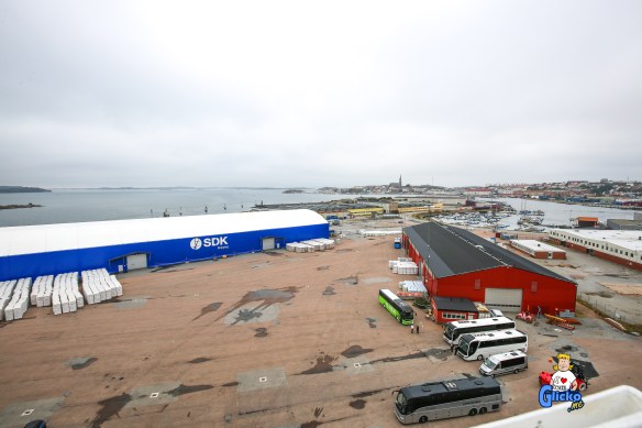 Wallins Bevakningstjänst I Väst AB har hand om säkerheten på området vid Grötö när kryssningsfartygen finns på plats.