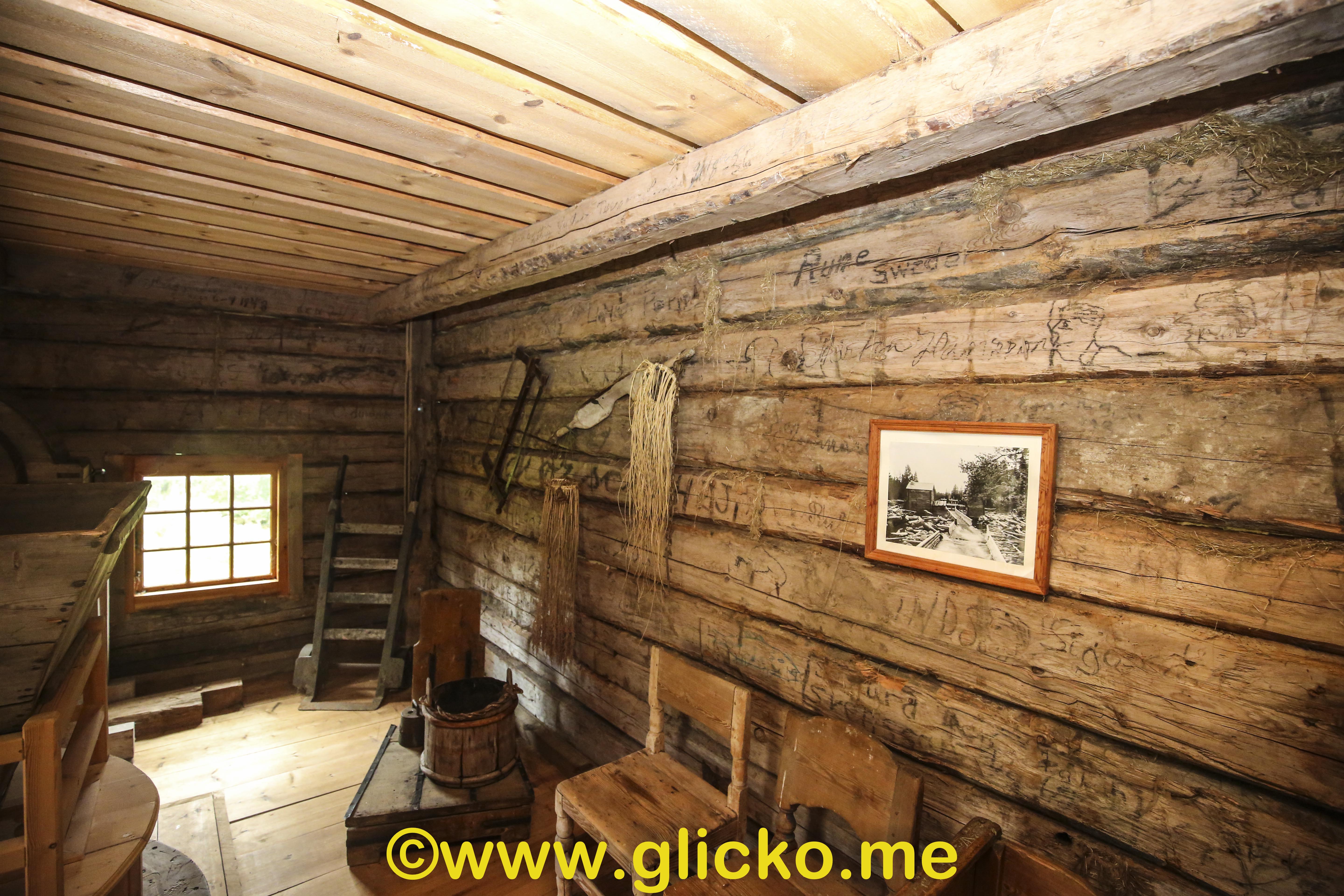 Vi går vidare till kvarnen som vars ursprung är från Rosseån. Den är från slutet av 1800-talet och förvärvades år 1999. Den flyttades till Fluren där den renoverades och monterades upp. Den har ett helt fungerande maskineri och 2001 invigdes den. I kvarnen kan man se namn som besökare har skrivit på väggarna.