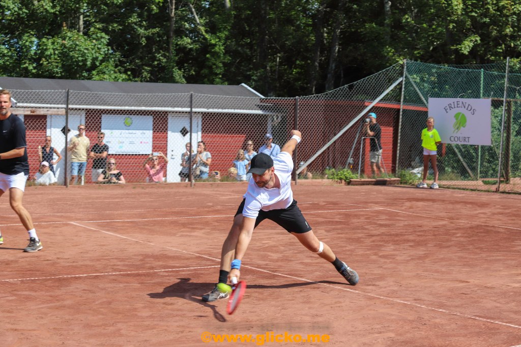 Kl.13:00 stod dessa tennisproffs på Fiskebäckskils Tennisklubbs tennisbanor Robin Söderling och Jonas Björkman med sina partners, Nicklas Timfjord och Tobias Hildebrand.