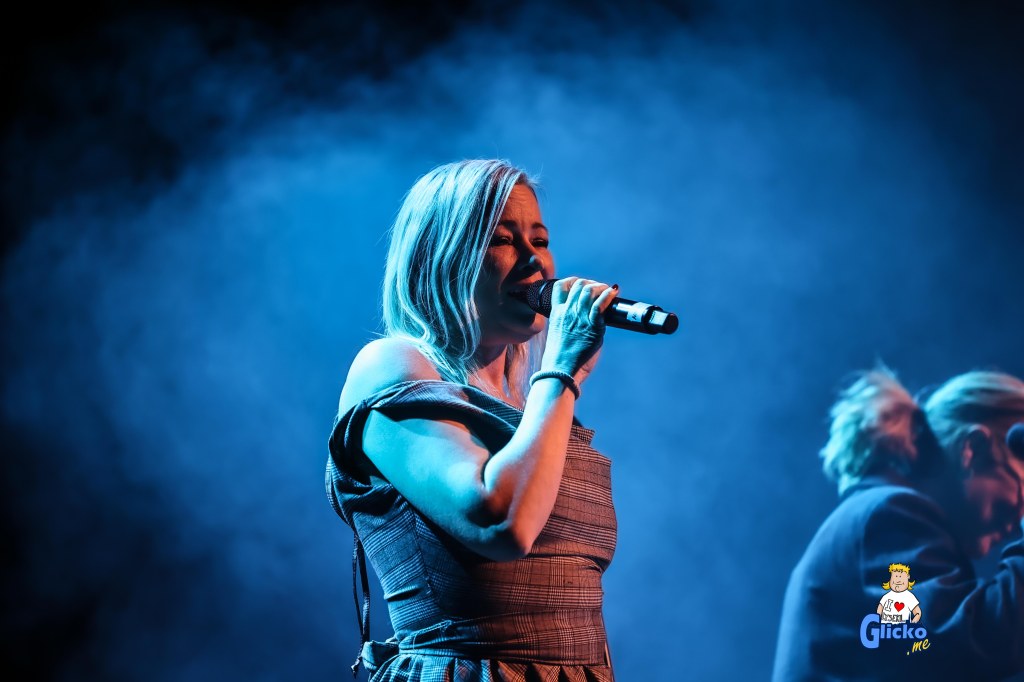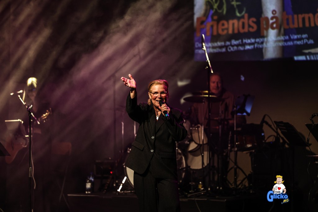 Det blev en kväll med mycket värme och kärlek och konserten började med ett Intro med låten Friends. Sen så kommer Kim & Nina in och det blir en fortsättning både med Friends och andra låtar under kvällen. Bland annat fick vi höra ”När jag tänker på imorgon”, ”Vi behöver varann”, ”The one that you need”, I can´t belive it” ”hennes ögon”, ”Kisses of fire”, ”In the heat of the night”, ”Bredvid dig”, ”Brother”, ”Hand i hand” och innan paus så bjuds det på ”I vårsolens sken”.