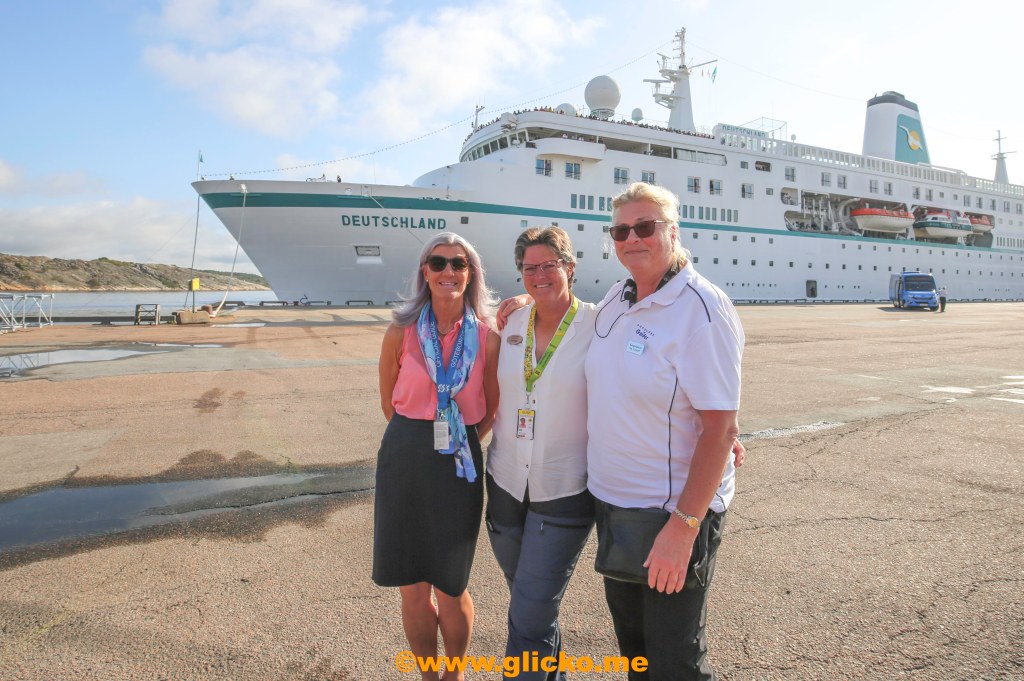 SDK Shipping AB var de som tog emot kryssningsfartyget med Felix Karlsson när det nu på morgonen anlände till Grötö. Cirka 09:20 så sänktes landgången ner på kajen vid Grötö. Hela 1105 stycken passagerare med mestadels tyskar är ombord på kryssningsfartyget M/S Artania när hon besöker Lysekil.