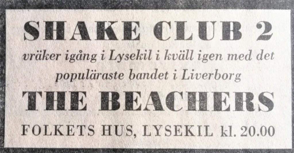 – Ja, du. Det jag minns är att vi hade bland annat Shakers, Hi-Fi Five, The Beat Stones med flera här i Lysekil. Shakers blev jag god vän med då jag slarvade med skolan och hängde med dem på turné i Sverige ihop med deras manager Rolf Hedin, som sedan blev manager för Tages.