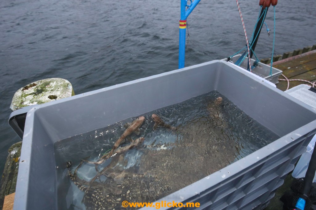 Havets Hus gör ett fantastiskt jobb i samarbete med Världsnaturfonden WWF med att arbeta med uppfödning och utsättning av hotade eller fredade arter. Idag var det återigen dags för att släppa ut småfläckiga rödhajar och knaggrockor vid den lilla flytbryggan utanför Havets Hus. I vanliga fall brukar släppen vara vid den stora bryggan vid Havets Hus, men på grund av blåsten så flyttades släppet.