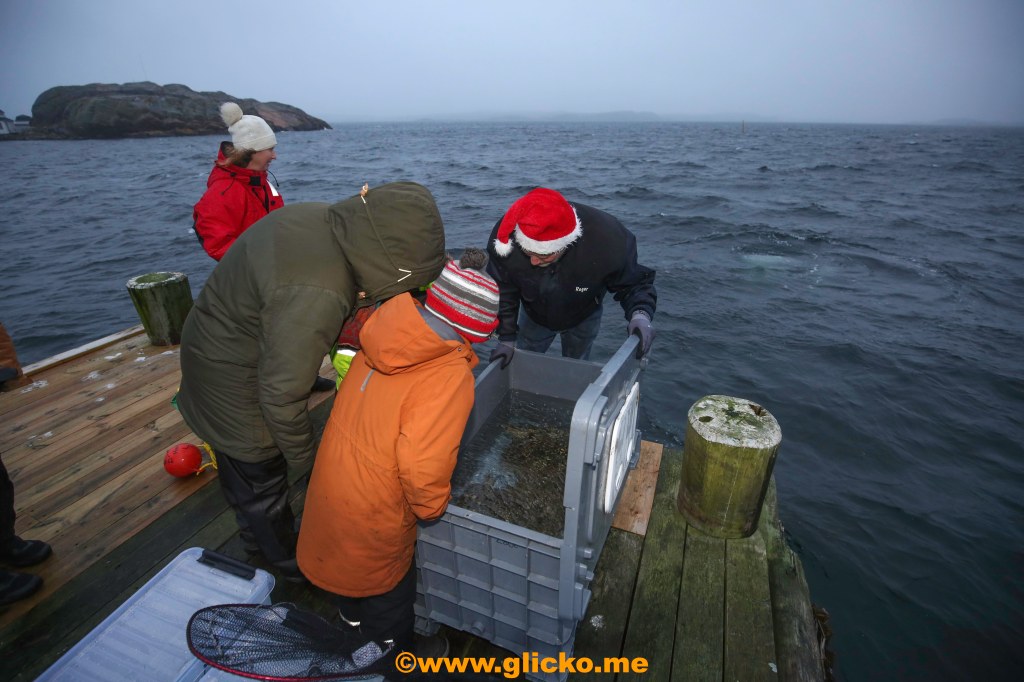 I dag hade Havets Hus hajsläpp vid Havets Hus brygga och bjöd på glögg och pepparkakor. Sex stycken småfläckiga rödhajar skulle släppas ut i Gullmarsfjorden.