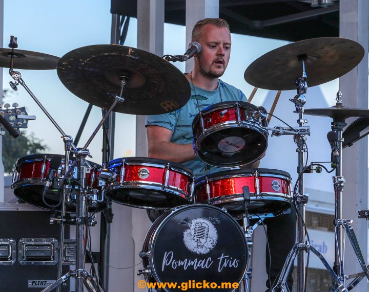 Efter att kvällens gästerna ätit klar så intog Pommac Trio scenen och började med ett intro som sedan mynnande ut i ett Cornelis Vreeswijk medley, och man kan inte annat än säga att Pontus låter verkligen som Cornelis Vreeswijk när han sjunger. Detta påpekade även Sonja under kvällen.