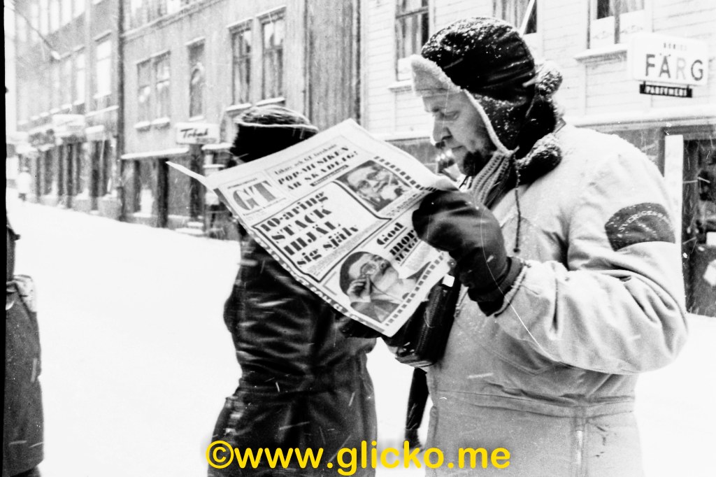 Det var första året jag var anställd på Lundboms Järn där Old House Inn nu är. På nyåret 1966 hade vi REA, men hela torget och gatan utanför var belamrad av fordon från SVT så våra REA-skyltar och skyltfönster syntes inte och kunderna var få. Många scener spelades in på Stadshotellet.