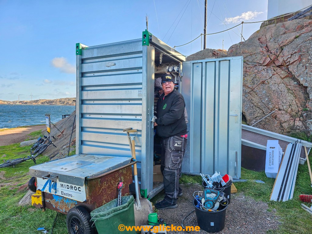 Roland Karlsson ordförande i Lysekils Vänner berättar att detta är en komplettering till själva hopptornsdelen. Sen kan det även vara någon som säljer glass eller annat där på sommaren så kan det även vara ett komplement till det.