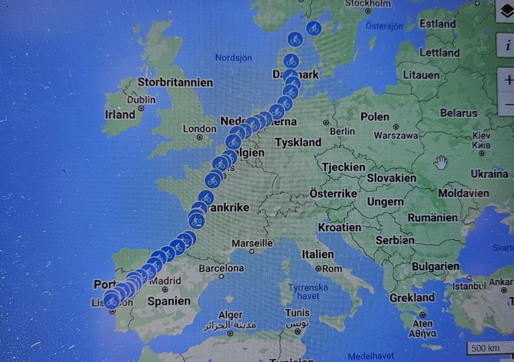 – I Portugal är det väl lite mindre än här, i Spanien är det ungefär som i Sverige. När du kommer in i Frankrike så är det mer cykelvägar. Samma om du kommer in i Belgien, Holland, Tyskland och Danmark så är det cykelvägar i princip överallt.