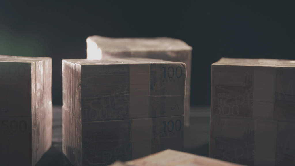 Efter lite mer än en halvtimma så började pengarna komma ut. När pengarna var ute så letade vi spårsändare och de hittade vi. Vi hittade även den dolda sändaren som sedan förbryllade poliserna. Vi bär pengarna och verktygen till bilen och det är riktigt tungt. Efter det åker vi omaskerade till Grötö och börjar dela upp pengarna. Där blir det lugnare fast det tar en stund innan vi kommer iväg.