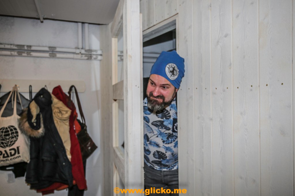 Johan tittar ut ur hemliga rummet hos Dive Team.