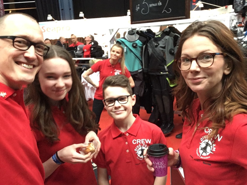 2019 familjen Tiger-Daniel, Linn, Adam och Malin på dykmässan