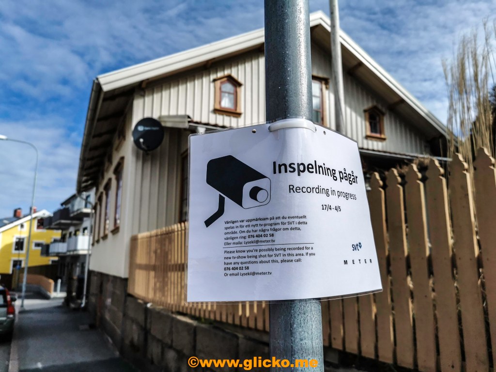 Jag cirkulerade runt med bilen och såg filmteamet med hundföraren söka efter dna på platsen för brottet. Mycket var avspärrat nere vid Ångbåtsbryggan och LP-huset. Wallins Bevakningstjänst i Väst skötte bevakningen av lokaler och annat vid inspelningen, och ofta såg man någon av Wallins Bevakningstjänst i Väst bilar parkerade vid arbetsförmedlingen och andra ställen.